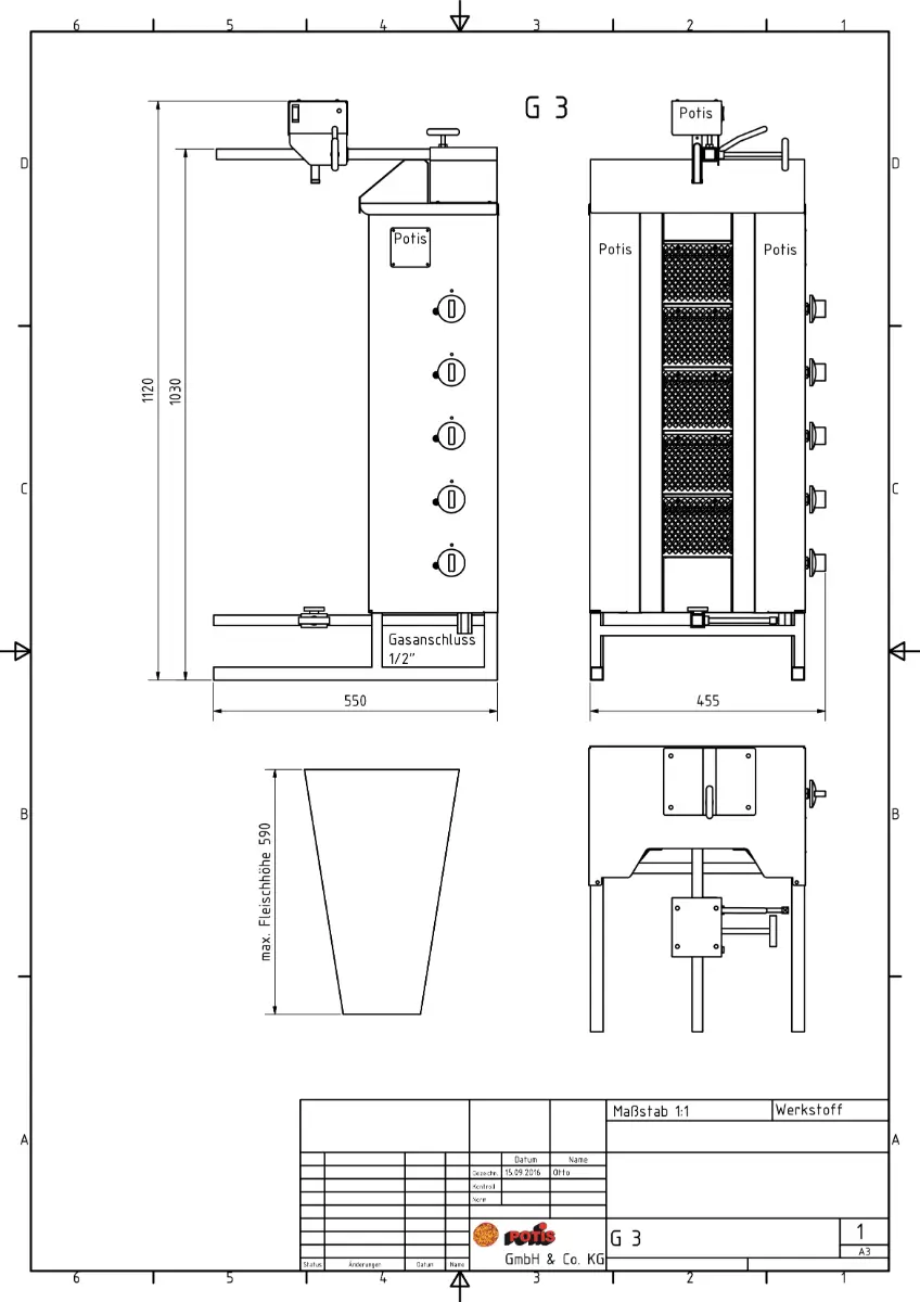 Charging space w/o grease pan (W x D): 455 x 590 mm