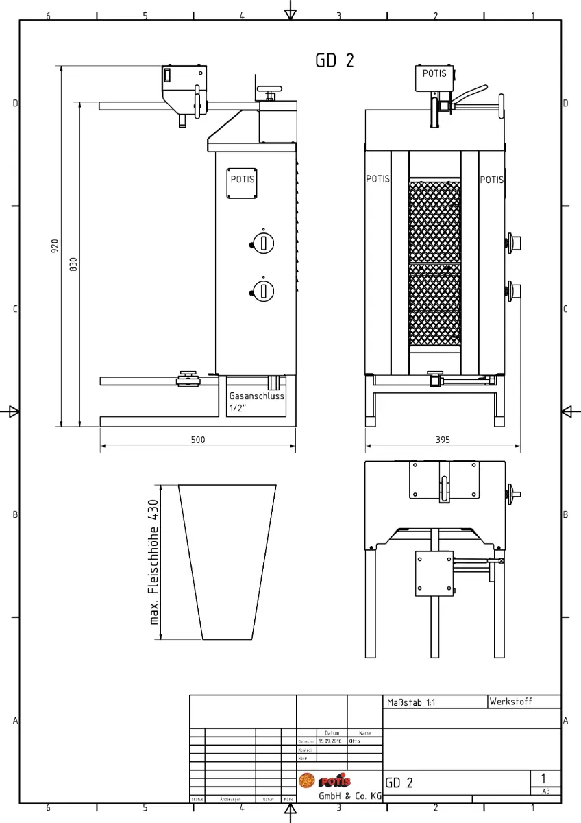 - Charging space w/o grease pan (W x D): 395 x 500 mm