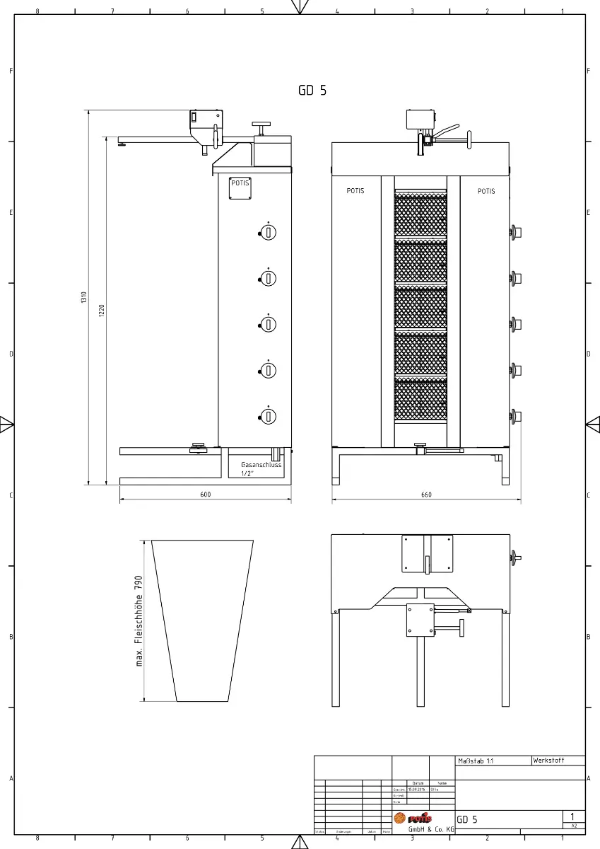 - Charging space w/o grease pan (W x D): 660 x 600 mm
